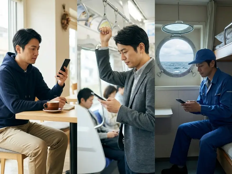 PCはもちろんスマホにも完全対応。通勤中や船上など、場所や時間を選ばず学習を進められます。
